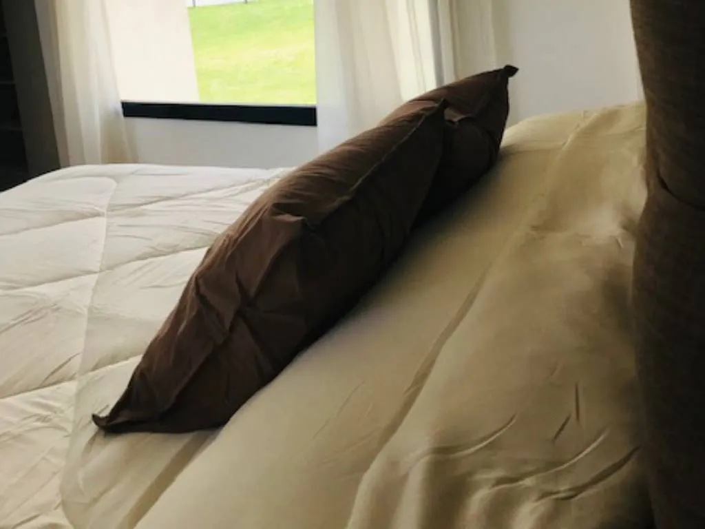 El sol de la mañana se cuela por las amplias ventanas del departamento, iluminando el espacio con una luz cálida y acogedora. Desde el balcón, se puede apreciar una vista panorámica de las sierras de Villa de Merlo, un paisaje que invita a la paz y la contemplación.