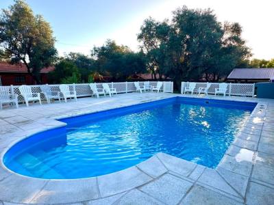 In the heart of Villa de Merlo, only 6 blocks away from Avenida del Sol and very close to downtown and the new bus terminal, you will find Cabañas Los Olivos, an ideal refuge for those looking for rest, nature and comfort. This privileged location allows you to enjoy everything the town has to offer without having to travel long distances, while enjoying the renowned Merlino microclimate: low humidity, fresh air, pleasant temperatures all year round and a feeling of well-being that invites you to renew your energy. Cabañas Los Olivos stands on a large wooded park of 3,000 m² with breathtaking views of the Sierras de los Comechingones. Its natural surroundings and peaceful atmosphere make it a perfect place for families, couplesgroups who wish to disconnect and enjoy the serenity of the mountains. The resort has different accommodation options to suit the needs of each guest: 4 large one-bedroom cabins with double bed base and divan with twin beds in the living room, 4 small cabins with similar layout, and a single room ideal for couplessmall families, equipped with double bed base and double bunk bed. All units are fully furnished and equipped. Among the outstanding services offered by Los Olivos, are: • Outdoor swimming pool, ideal to enjoy in summer. • Covered parking for safety and comfort. • Barbecue area and barbecue grills to share meals outdoors. • 32-inch LED TV with cable. • Air conditioning hot/cold and balanced draft heaters, for a comfortable stay in any season. • Refrigerator with freezer, microwave, full set of dishes and equipped kitchen. • WiFi throughout the complex. • Double bed base in each unit, guaranteeing a quality rest. Cabañas Los Olivos is open all year round, being an excellent choice to enjoy Villa de Merlo in any season. Ideal for those who value comfort, contact with nature and proximity to the main tourist attractions of the region.