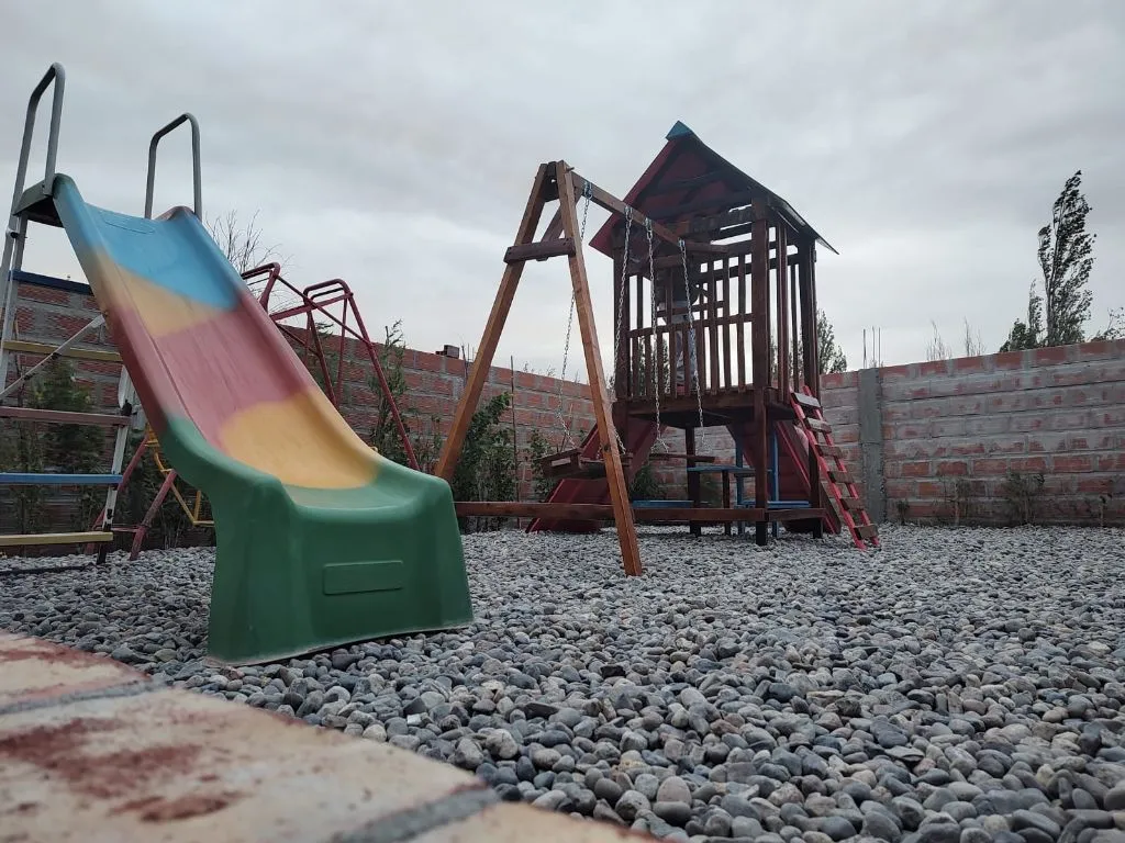 Cuentan con cocina completa, comedor, sala de estar con chimenea, baño privado y terraza con vista al jardín o las montañas. Además, el complejo dispone de un amplio jardín con parrilla, ideal para disfrutar de momentos de relax al aire libre.