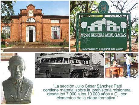La sección Julio César Sánchez Ratti contiene material sobre la prehistoria misionera, desde los 7.000 a los 10.000 años a.C., con elementos de la etapa formativa. Otro sector dentro de la misma sección muestra objetos etnográficos, pre-jesuíticos e históricos, como armas de la Guerra de la Triple Alianza de 1865.