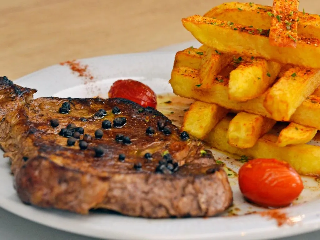 El lugar es lindo, la atencion muy buena y la comida tambien (pedimos ojo de bife con papas) porciones adecuadas pero el precio comparado a otros lugares es bastante elevado.