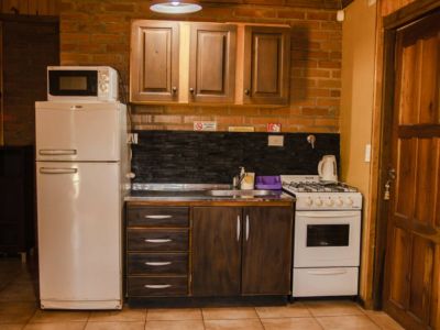 Las cabañas, de 42 m² y capacidad para hasta 4 personas, ofrecen una distribución ideal para familias o grupos pequeños. Están equipadas con cama King Size, dos camas individuales, cocina completa, frigobar, TV LED, aire acondicionado y Wi-Fi, garantizando así una estadía confortable. Además, incluyen ropa blanca, toallas, amenities de baño y servicio de mucama.