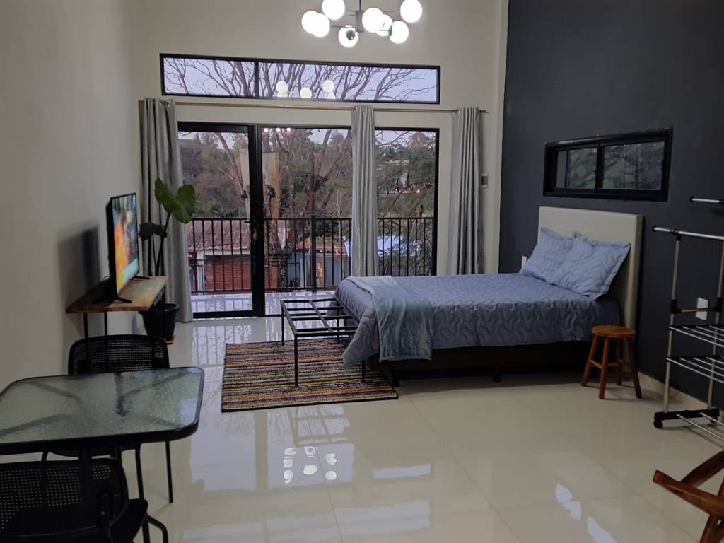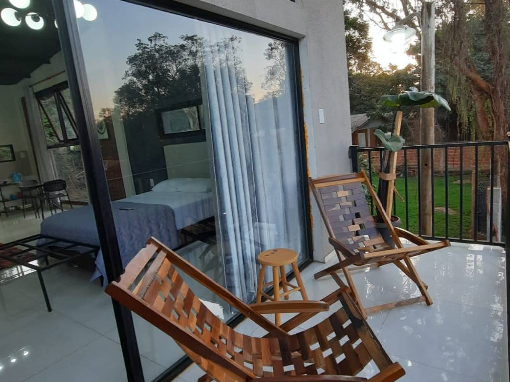 Altamente recomendable!! Los departamentos son espaciosos, impecables y con una decoración de muy bien gusto. Particularmente no tuve ni frío ni calor, todo el equipamiento para aclimatar la funciona perfectamente. Hay una cocina comunitaria donde se puede cocinar a gusto y conocer a los otros huéspedes del lugar lo que me parece genial como concepto, el sillón y la cama de la habitación son muy comodos. El parque y el entorno del lugar es precioso e ideal para estar en contacto con la naturaleza. Los departamentos están ubicados a una cuadra de la ruta por donde pasan los buses que conectan con cataratas y con el centro de puerto Iguazú. Hay minimercado a la vuelta de la propiedad. La atención que recibí de parte de Iván y Luis es destacable siempre atentos, claros y ágiles en la comunicación en las recomendaciones sobre el lugar y en como llegar a los diferentes puntos que visite. Realmente una hermosa experiencia, volveré muy pronto.