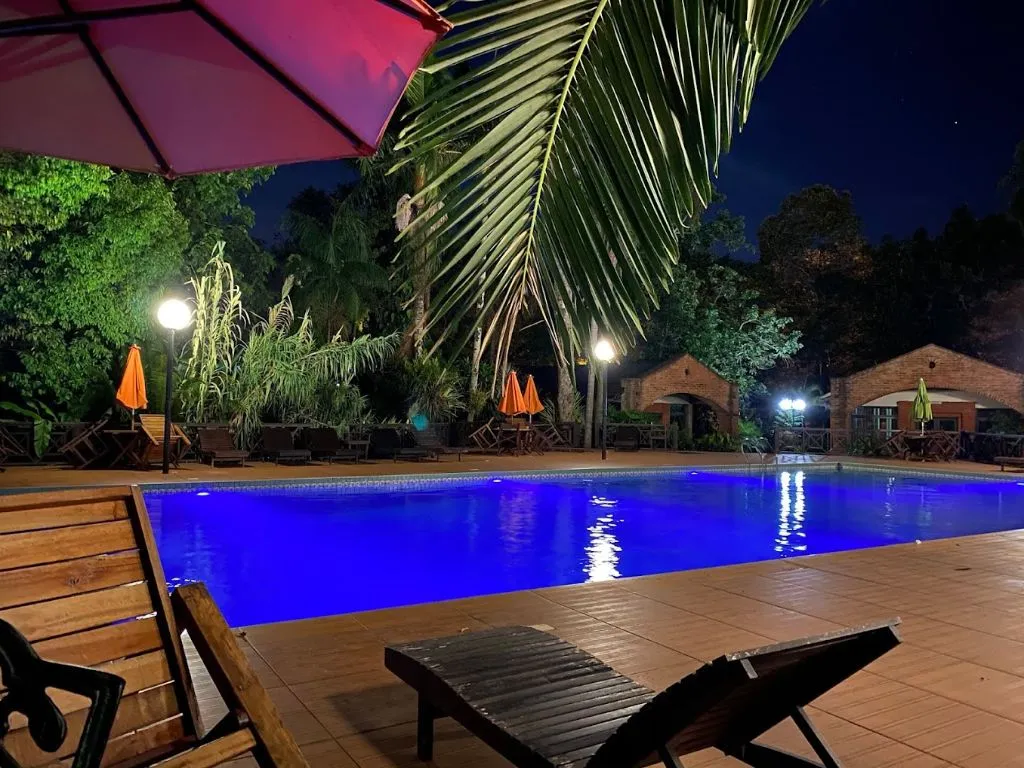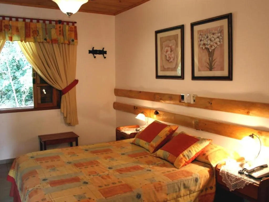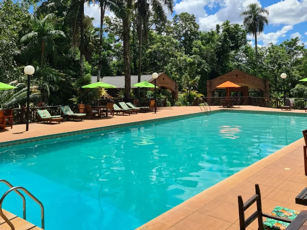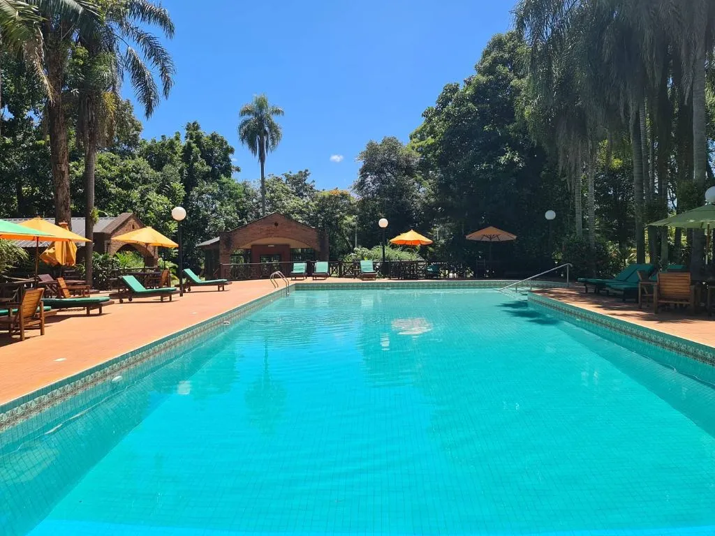 Las cabañas están equipadas con aire acondicionado, televisión, minibar y Wi-Fi gratuito, además de una pequeña terraza donde los huéspedes pueden relajarse y disfrutar de las vistas naturales. El hotel también cuenta con una piscina al aire libre rodeada de vegetación, perfecta para refrescarse después de un día de exploración. La ubicación es estratégica, a pocos minutos de las Cataratas del Iguazú y de otros puntos de interés turístico, permitiendo a los huéspedes disfrutar de la región con facilidad.