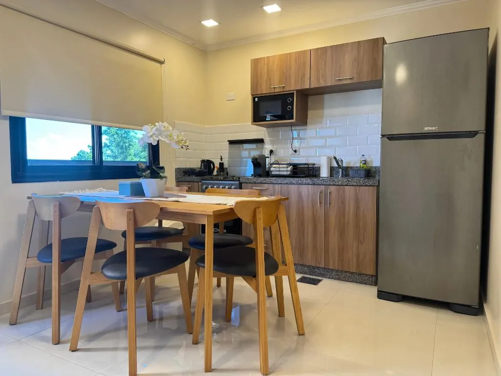 Todos los departamentos incluyen ropa de cama y toallas, aire acondicionado frío/calor, WiFi, Smart TV y cocinas completamente equipadas. Los baños cuentan con ducha, bidet, secador de pelo y artículos de higiene personal.