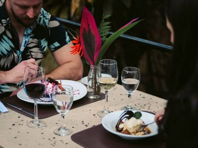 At sunset, the restaurant offers an exclusive menu of drinks and signature dishes. Dishes are inspired by regional cuisine and combine fresh and seasonal ingredients.