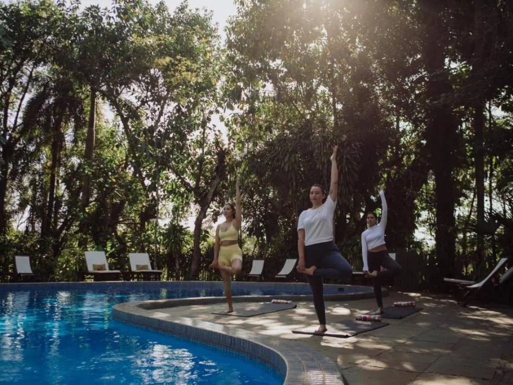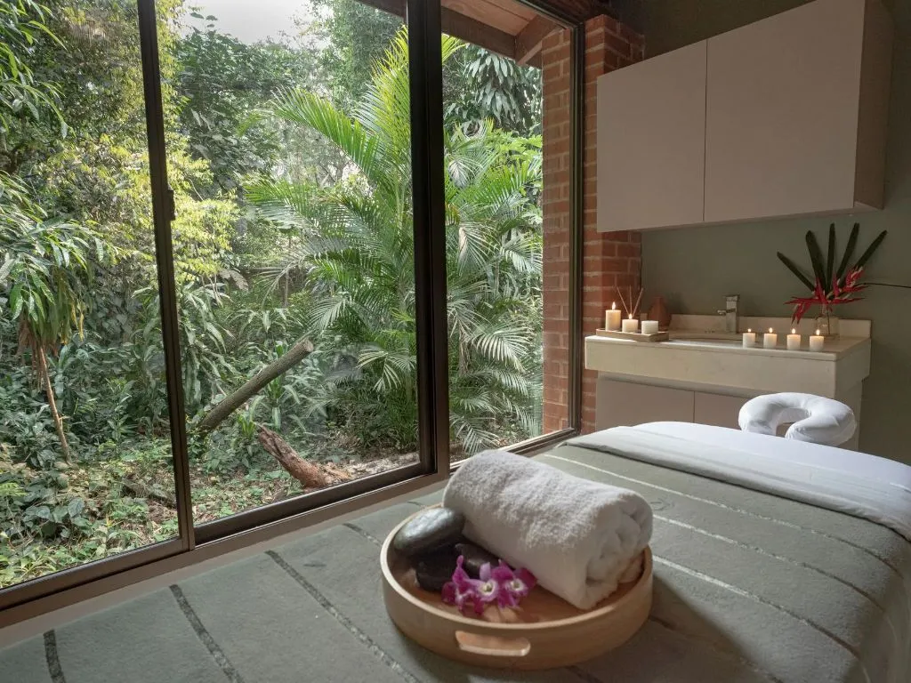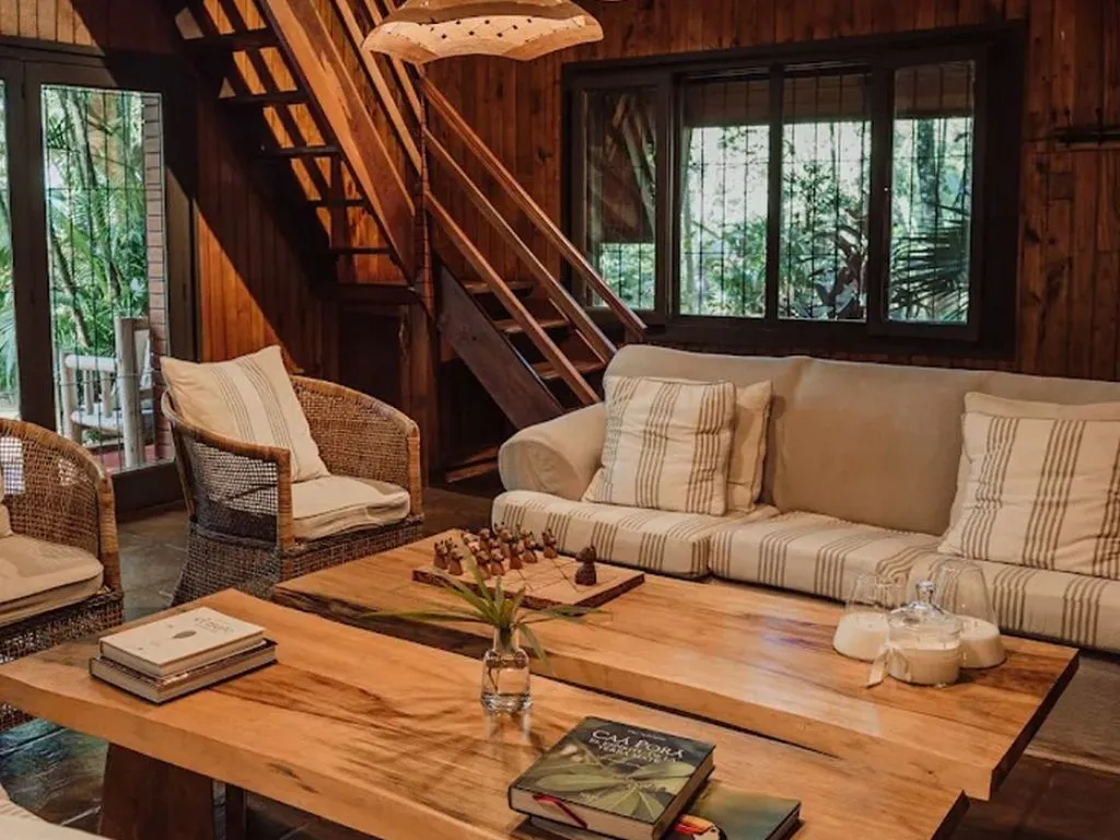 Las instalaciones destacan por su estilo acogedor y elegante, con salas de estar amplias, terrazas con hamacas y ventanales que enmarcan la vegetación circundante. Las dos piscinas rodeadas de selva ofrecen un espacio único para el descanso, donde el agua refleja el cielo y el susurro de la naturaleza acompaña cada momento.