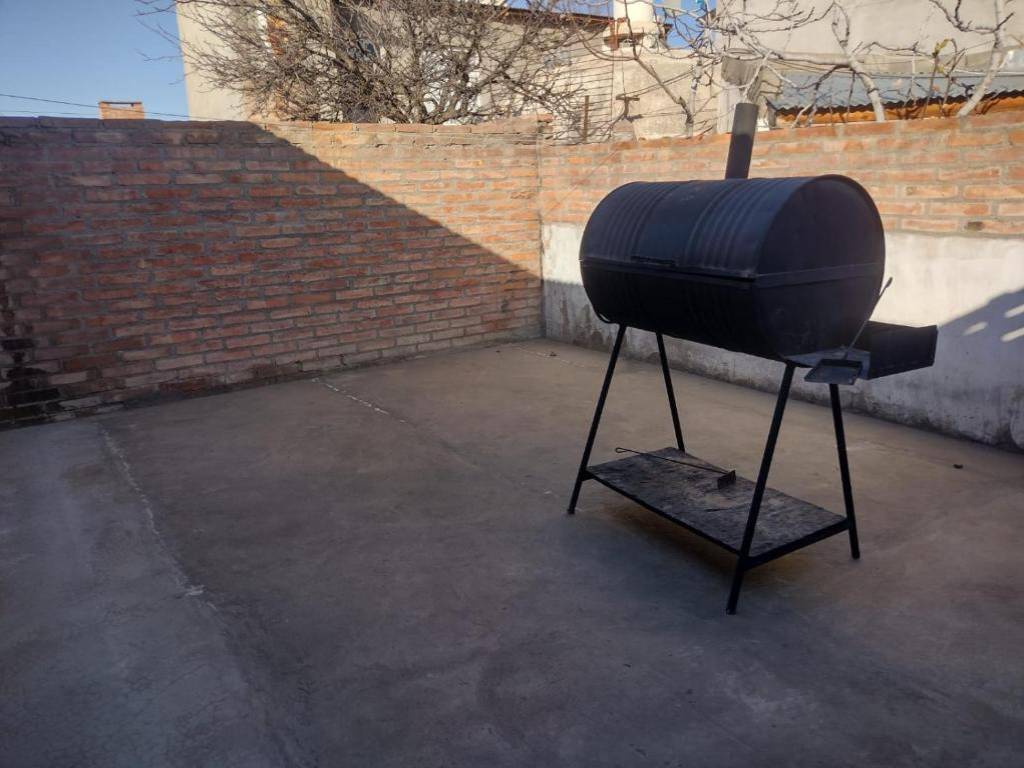 En el exterior un pequeño jardín con chulengo.