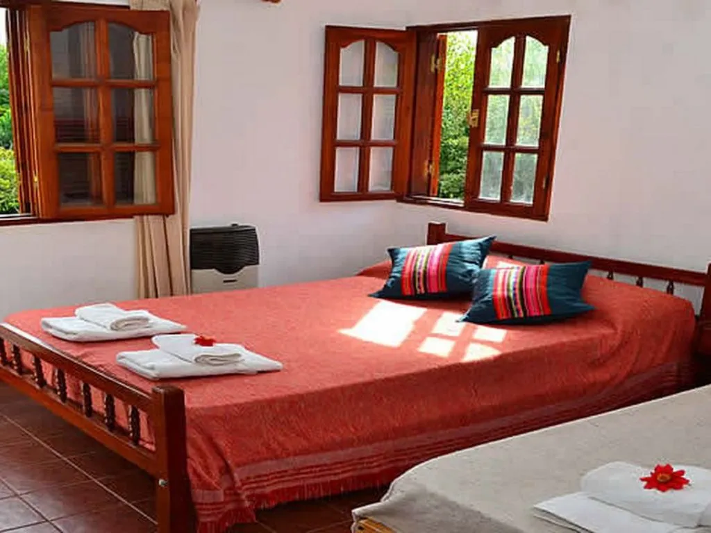 Lomadas Casa de Campo dispone de amplias habitaciones diseñadas para el descanso. En la planta baja, la Habitación 1 ofrece capacidad para tres personas, con cama matrimonial, cama single, placard, ventilador y calefacción. Desde sus ventanales se aprecia una hermosa vista al parque, invitando al relax y la desconexión.