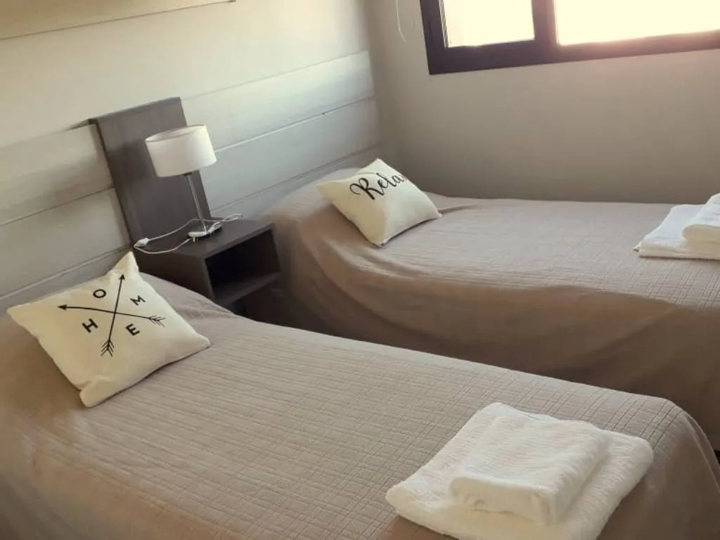 El departamento, amplio y cuidadosamente acondicionado, está diseñado para albergar hasta cuatro personas cómodamente. La cocina, completamente equipada, permite disfrutar de la preparación de comidas como en casa, y el espacio de living comedor invita a relajarse y compartir gratos momentos. Sus dos dormitorios, uno matrimonial y otro individual, están provistos de ropa de cama y toallas, asegurando el máximo confort durante tu estadía.