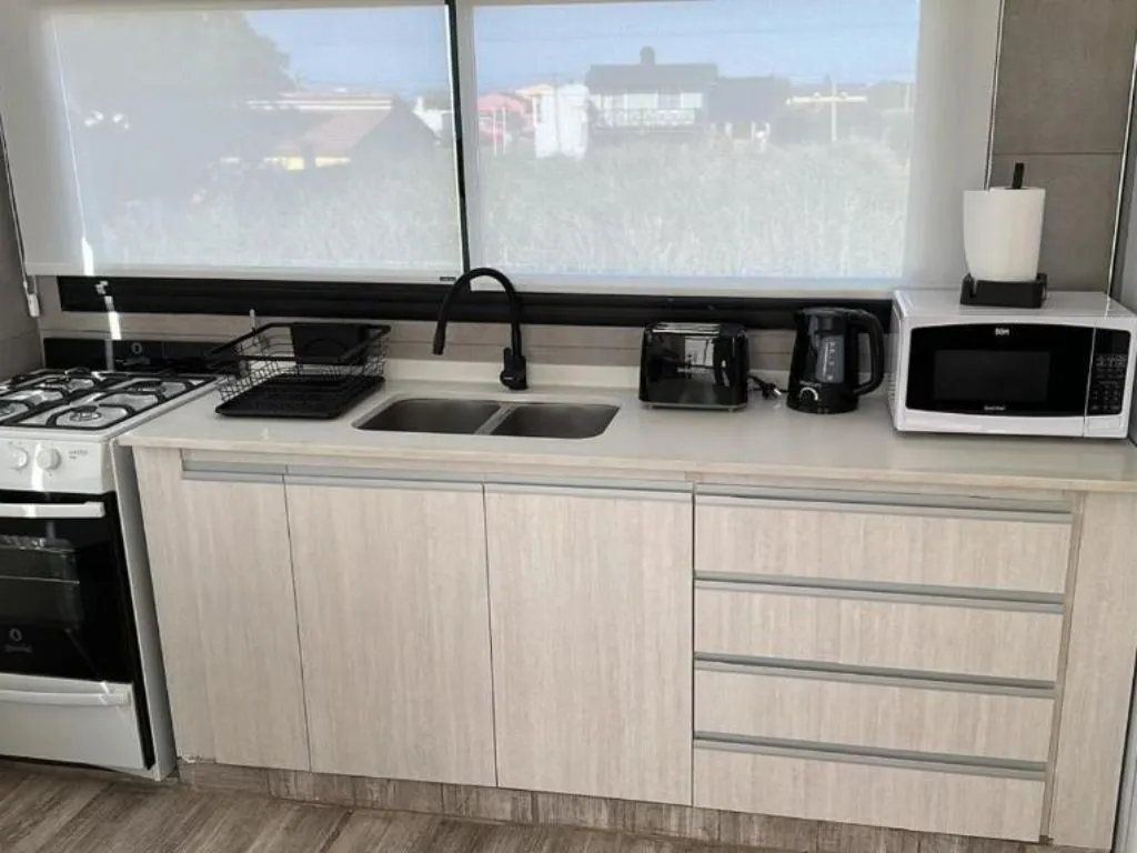 Modernos departamentos en San Clemente del Tuyu equipados con WiFi gratis, aire acondicionado, cochera, TV de pantalla plana, cocina completa con heladera y microondas, además cuentan con patio, terraza y parrilla.