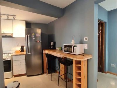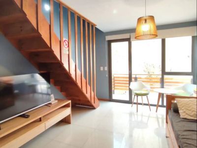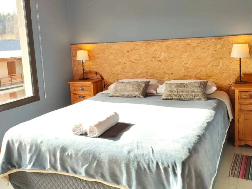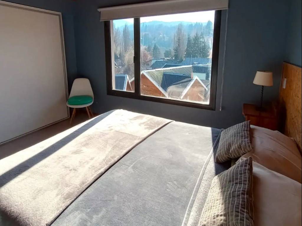 Spacious, bright, modern and comfortable apartment, located in the downtown area of San Martín de los Andes, a few blocks from the downtown YPF. It is made up of a ground floor and a high floor, and is equipped to receive up to 6 guests. On the upper floor you will find the main bathroom and the two bedrooms, one with a queen-size double bed and a beautiful view of Cerro Bandurrias, while the other room has bunk beds, a desk and a beautiful view of a small hill with lots of green.