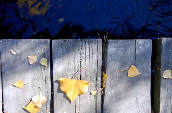 Puente de madera y hojas