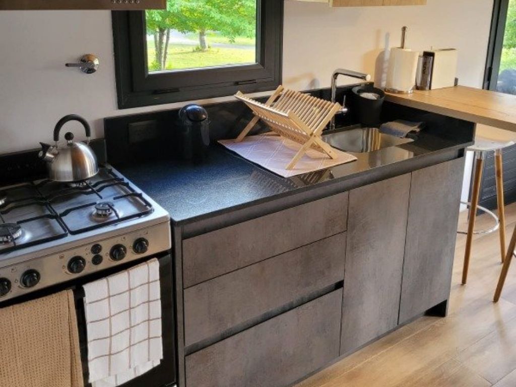 Cada unidad cuenta con una habitación adaptable que puede configurarse con una cama queen o dos camas individuales, equipada con Smart TV. El baño incluye ducha, amenities de Organ&Co y secador de pelo. La cocina, completamente equipada, dispone de cafetera Nespresso, prensa francesa, microondas y vajilla completa, ideal para disfrutar de una comida casera. Además, el living, con amplios ventanales, ofrece vistas panorámicas al paisaje, un cómodo sofá y un sillón perfecto para leer o relajarse.