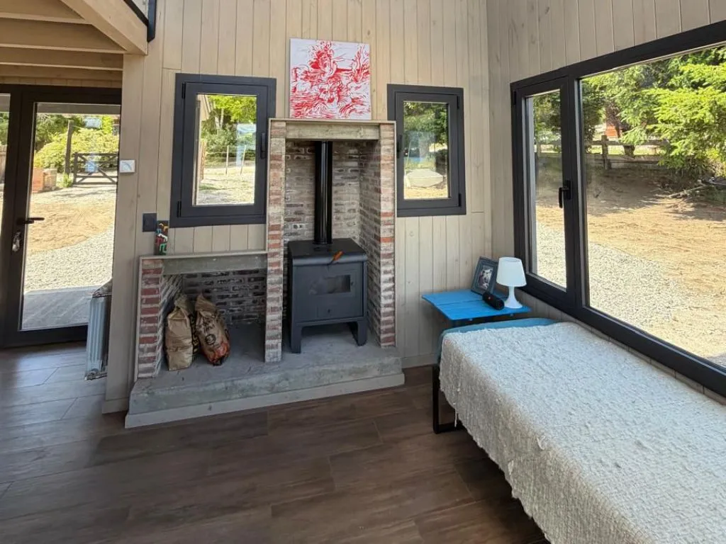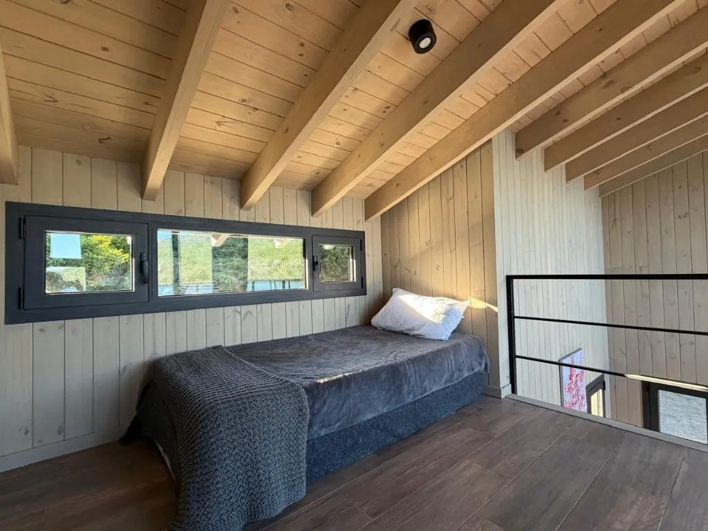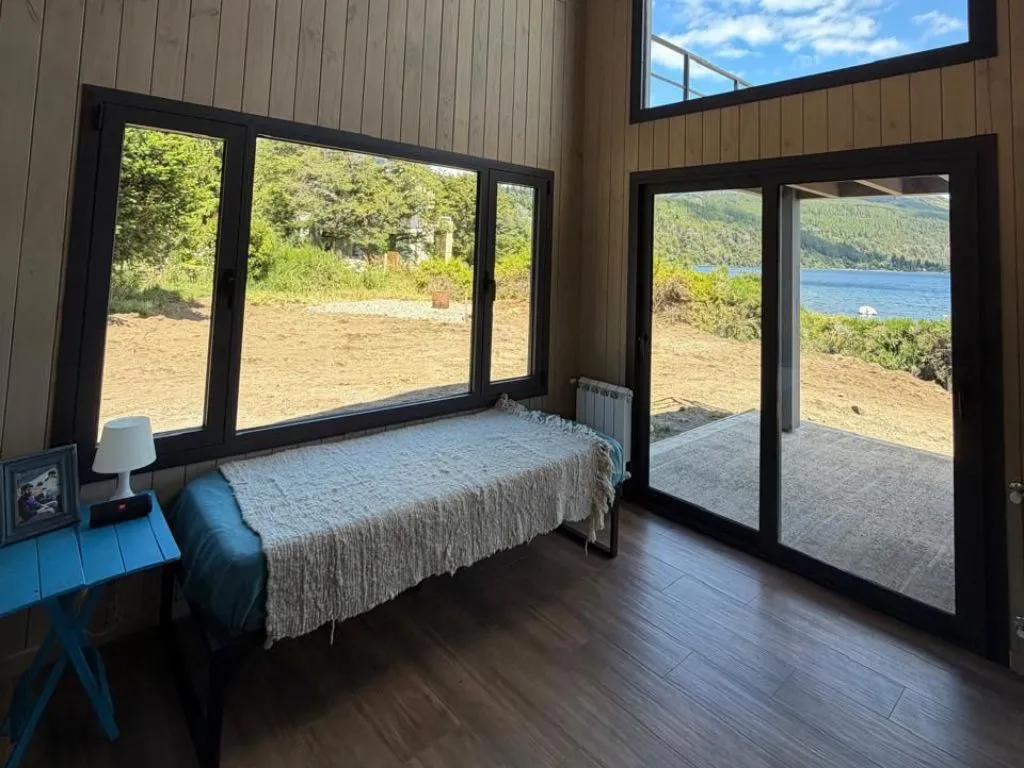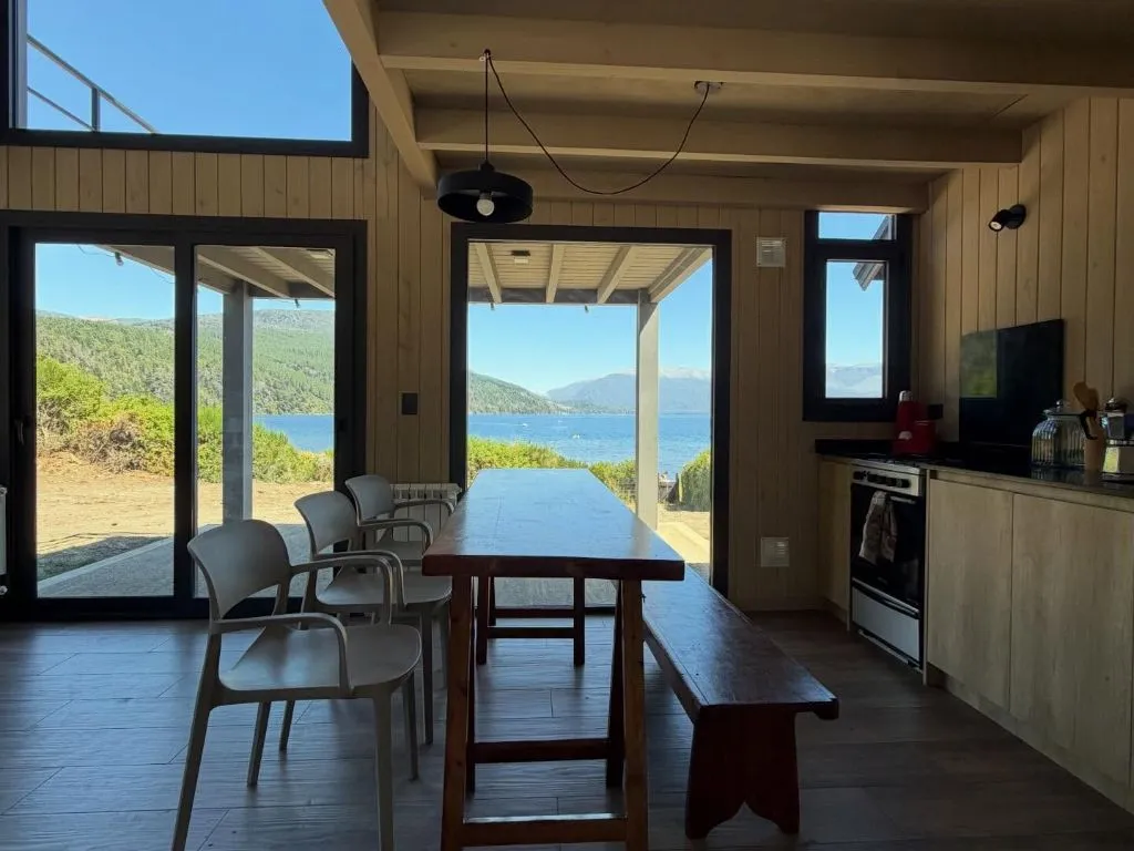 La cabaña en Lolog dispone de baño completo, living-comedor amplio con sofá, cocina totalmente equipada y balcón con vistas panorámicas al paisaje serrano y lacustre. La ubicación sobre la costa del Lago Lolog permite el acceso directo al agua desde el propio alojamiento, lo que la convierte en una opción destacada para quienes buscan contacto con la naturaleza durante su estadía en la región.