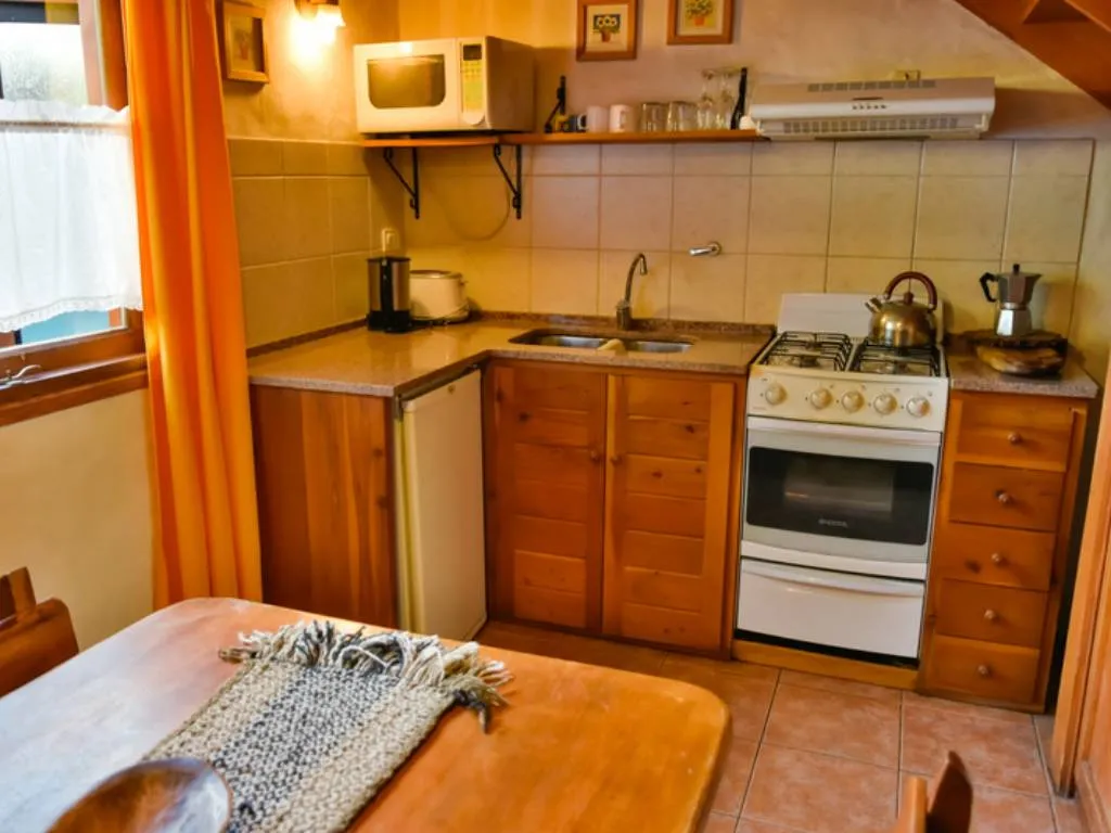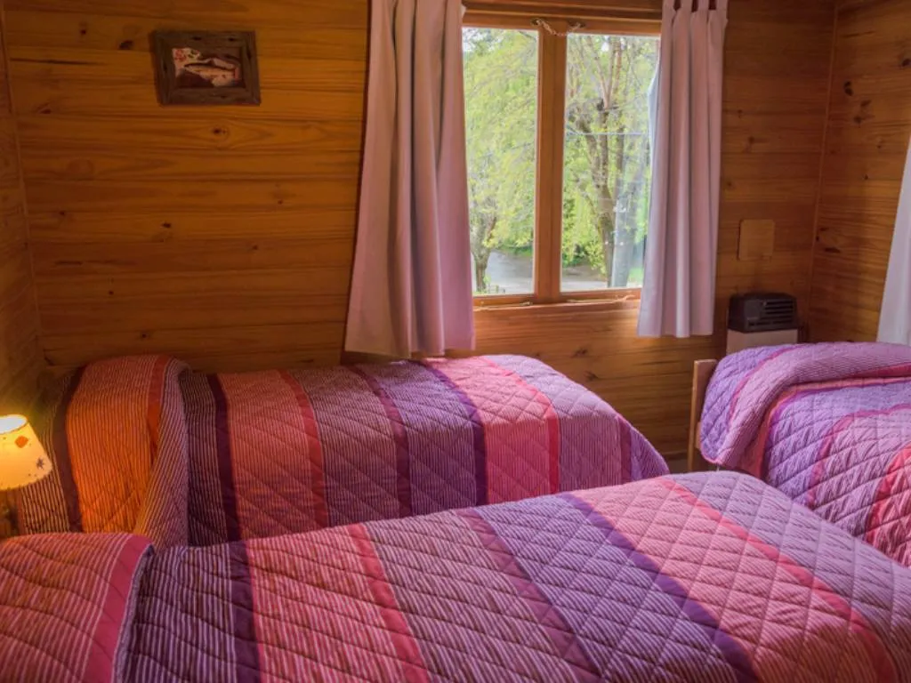 Each cabin features a fully equipped kitchen, bedrooms with linens and towels, a private bathroom, and a cozy wood-burning fireplace that adds warmth to the Patagonian nights.
