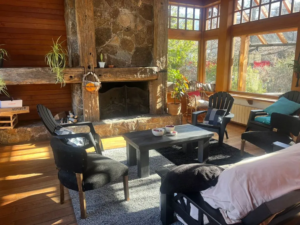 Los Cipreses se encuentra en el corazón de San Martín de los Andes, en la provincia de Neuquén, Argentina. Aunque está situada en el centro de la ciudad, la cabaña ofrece una experiencia tranquila, rodeada de un entorno natural impresionante. Su construcción, que mezcla madera y piedra, le otorga un estilo rústico y acogedor, armonizando perfectamente con la belleza del paisaje patagónico.