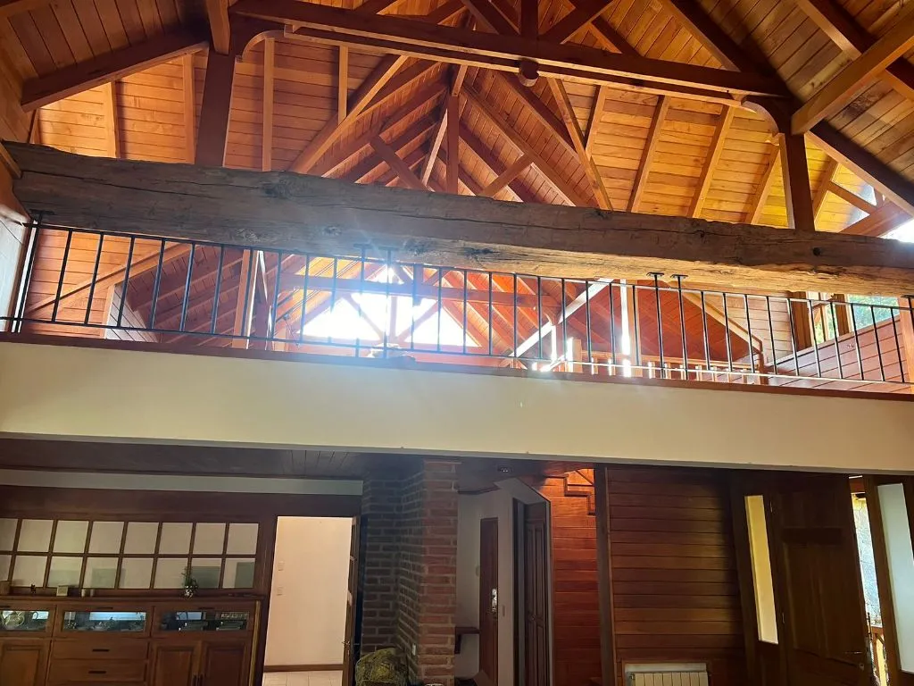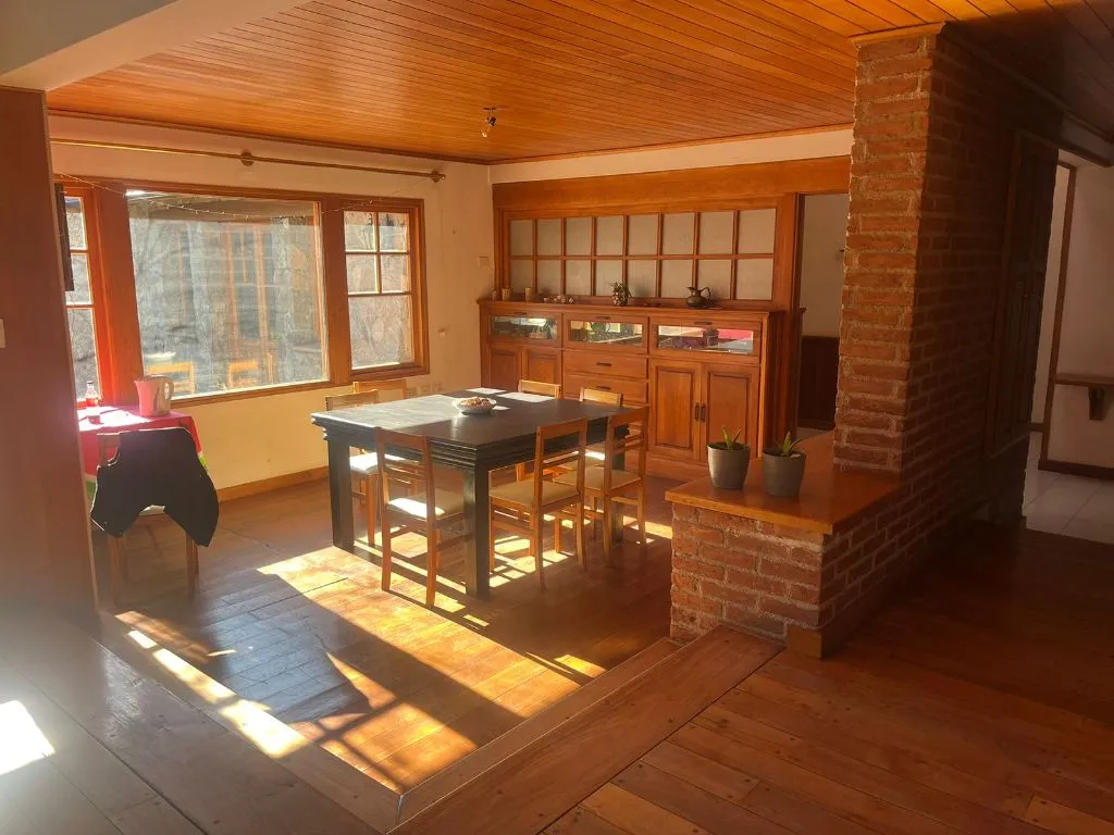 Con capacidad para 11 personas, es un lugar ideal para grupos de amigos o familias. La cabaña cuenta con espacios amplios y luminosos, una chimenea central y grandes ventanales que brindan vistas panorámicas de los alrededores. Está equipada con todas las comodidades modernas necesarias para una estancia placentera.