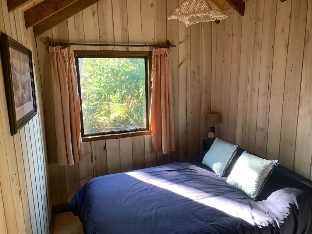 El dormitorio, decorado con buen gusto, garantiza un descanso reparador. La cama, vestida con suaves sábanas, invita a soñar con aventuras al aire libre. Desde la cabaña, los huéspedes pueden acceder a diversas actividades al aire libre, como senderismo, esquí, pesca y paseos en bicicleta. Además, la ubicación estratégica de la cabaña facilita la exploración de los alrededores y el descubrimiento de los encantos de San Martín de los Andes y el Lago Lolog.