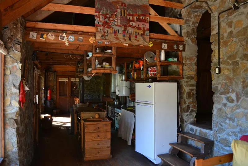 La casa de 130 m2 apta para 8 personas cuenta con cocina económica y hogar a leña, tres habitaciones: una de ellas con cama matrimonial, otra con dos camas cuchetas, y la ultima, con dos camas individuales, un baño completo con bañera, un entrepiso, estar comedor y cocina con vista a la montaña, deck de 50 m2, parrillero y fogón exterior. Luz 220 volts mediante generador propio, luz de emergencia 12 volts con panel solar, termo a gas 80 lts y cocina con horno, heladera con freezer a gas y salamandra de combustión lenta a leña.