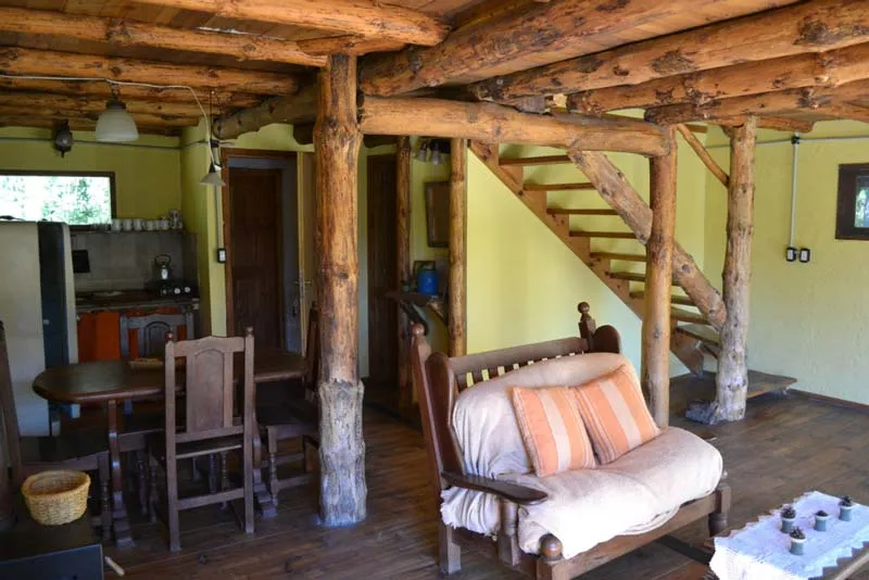 La cabaña de 80 m2 apta para 4 personas cuenta con cochera, amplio estar, comedor, cocina, baño completo y 2º planta dos dormitorios, uno con cama matrimonial y otro con dos camas individuales. Equipada con heladera, termo 80 lts y anafe; salamandra a leña combustión lenta y hogar leña.