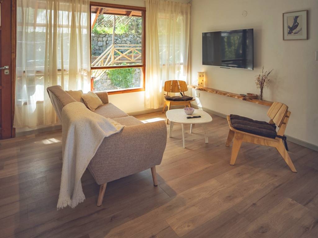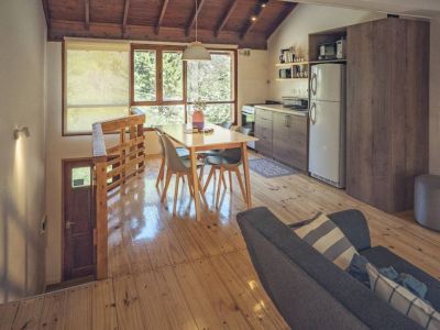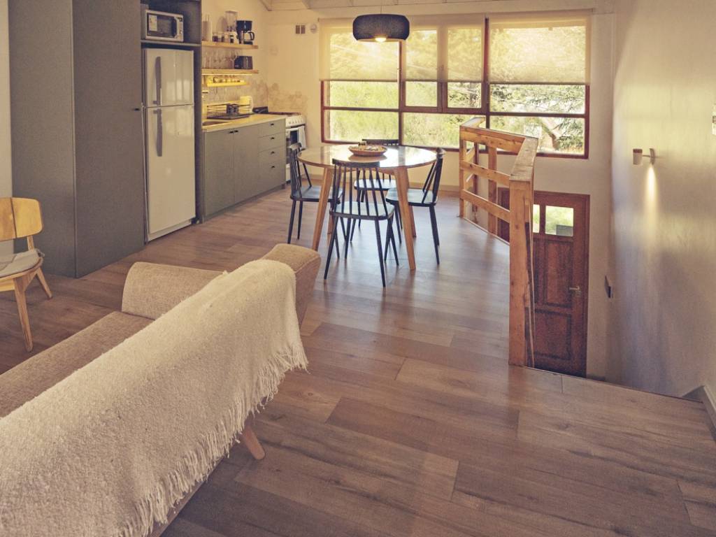Las cabañas son totalmente equipadas para grupos de hasta 4 personas. Cuentan con un patio individual con parrilla y decorado con guirnaldas, estacionamiento privado, Smart TV de 50 con Netflix, Disney+ y Wifi por fibra óptica, cocina con vajilla completa, cafetera, licuadora y tostadora, servicio de blanquería incluido (ropa de cama y toallas) y calefacción con calefactores por tiro balanceado con detectores de gas y monóxido de carbono.