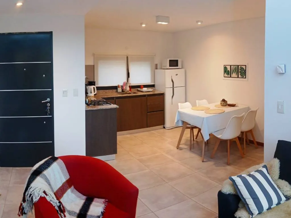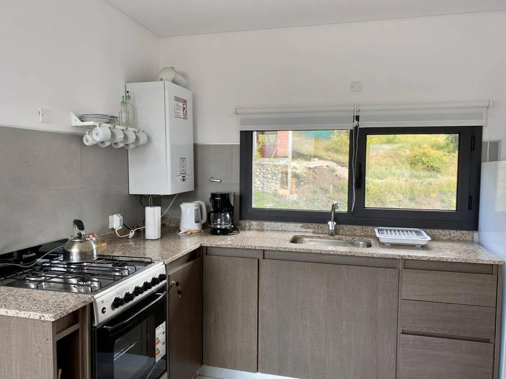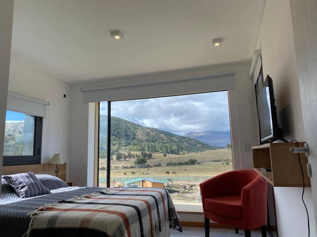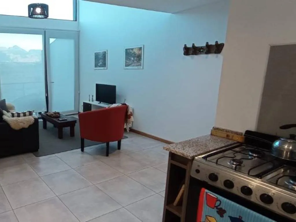 El alojamiento está completamente equipado para una estadía placentera. Amplios ventanales permiten que la luz natural inunde el espacio, mientras que las vistas panorámicas a la cordillera de los Andes quitan el aliento. La cocina, con microondas y heladera, facilita la preparación de deliciosas comidas caseras. Y para disfrutar del aire fresco de la Patagonia, el departamento cuenta con un balcón con mesas, sillas y parrilla, perfecto para asados bajo el cielo estrellado.
