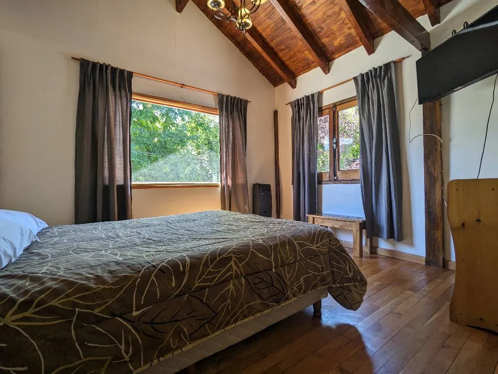 The rooms at Hostería Hueney Ruca are decorated in a simple and cozy style. They all have comfortable beds, television, free Wi-Fi and private bathroom.