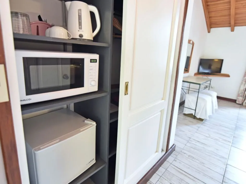 All units are equipped with a minibar, microwave, electric kettle, dishware, TV, bed linens, towels, and a full bathroom, ensuring a comfortable stay whether in wintersummer.