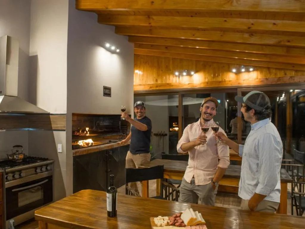 El entorno natural del establecimiento es uno de sus grandes diferenciales. La Fontaine cuenta con un amplio parque arbolado con costa de arroyo, rodeado de montañas y vegetación autóctona, lo que brinda un ambiente de calma y contacto con la naturaleza. Para el disfrute de grandes y chicos, dispone de juegos infantiles, una piscina climatizada con vistas al arroyo, y un quincho cerrado y calefaccionado con parrilla y cocina industrial, completamente equipado para encuentros en grupo.