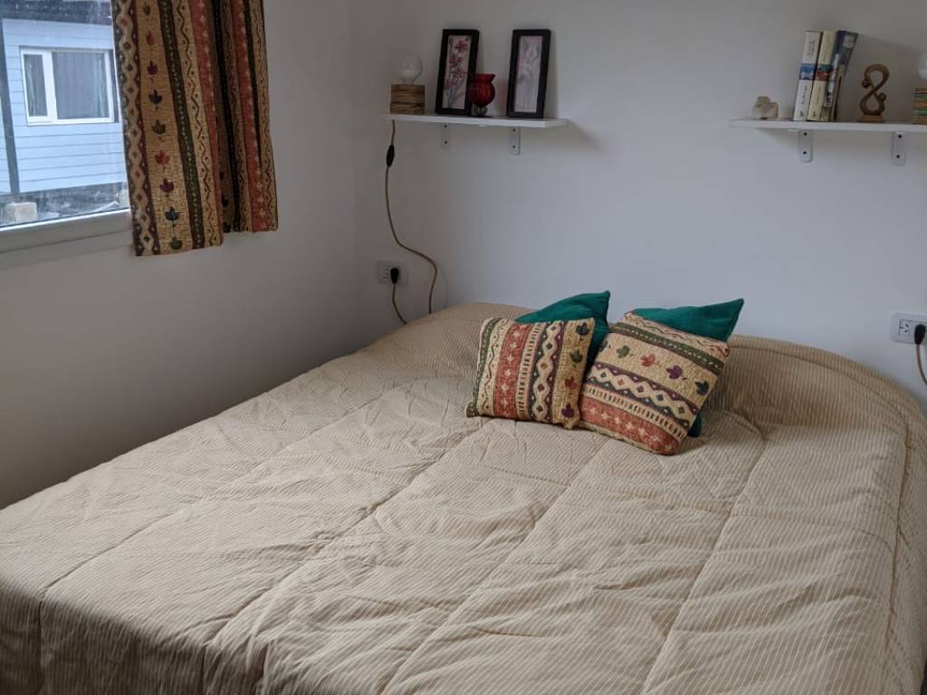 Con capacidad para 2 personas, este refugio brinda un ambiente cálido y elegante. La cocina, equipada con microondas, frigobar y pequeños electrodomésticos, permite preparar comidas caseras con comodidad. La barra con bancos altos es ideal para disfrutar de un desayuno o una cena en un entorno íntimo. El dormitorio matrimonial, sencillo y confortable, se completa con un estante práctico para la ropa. El baño, amplio y luminoso, invita al relax.