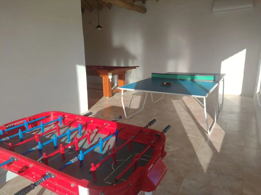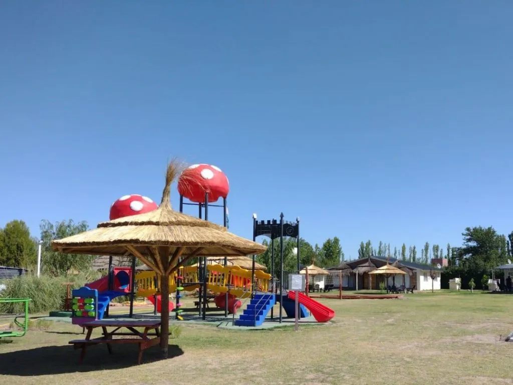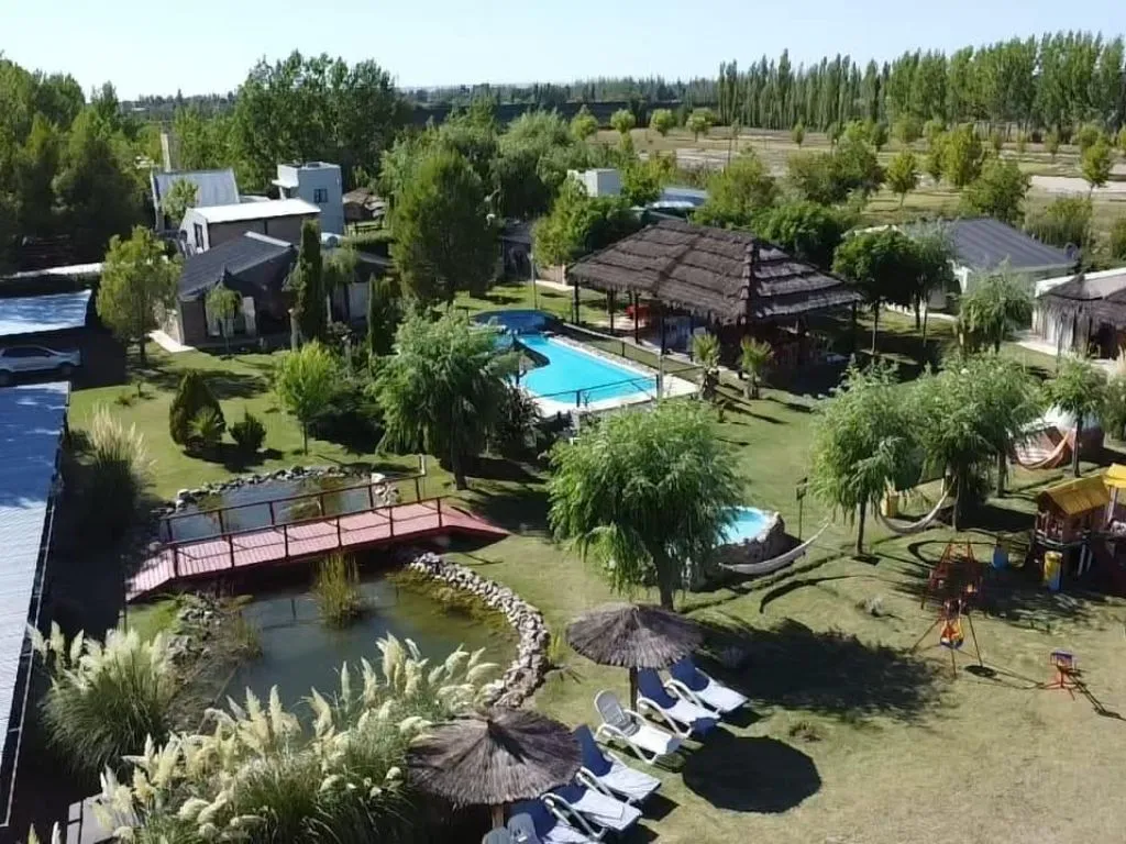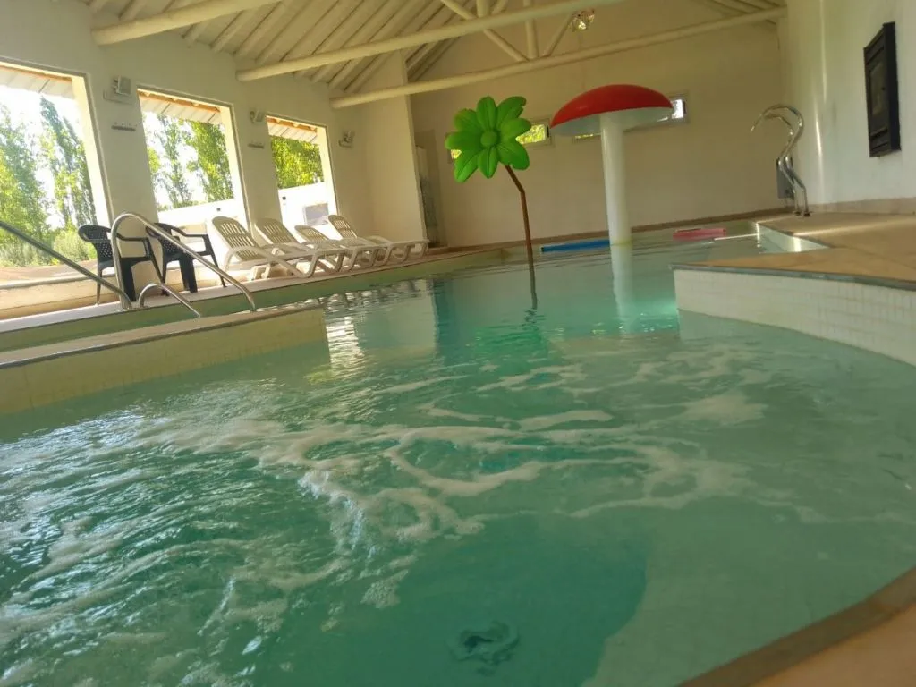 El complejo se extiende en casi una hectárea rodeada de un entorno natural, perfecto para desconectarse de la rutina y disfrutar de los paisajes de San Rafael. Entre los servicios destacados se encuentran una piscina climatizada con hongo cascada, piscina al aire libre, jacuzzi, plaza de juegos con dinosaurios gigantes, parrillas, salón de juegos, quincho cubierto y estacionamiento. Además, los huéspedes reciben una atención personalizada para garantizar una experiencia única.