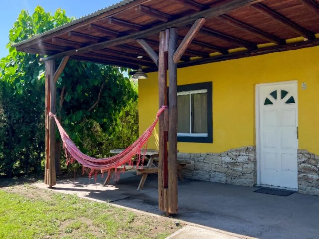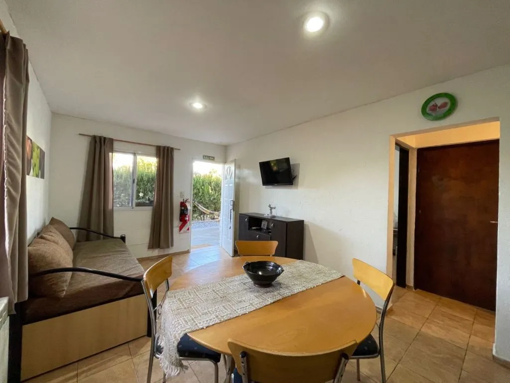 • Cabaña “Amarilla” (1 dormitorio): 1 habitación con cama doble, diván cama en el living comedor, cocina equipada y baño completo.
