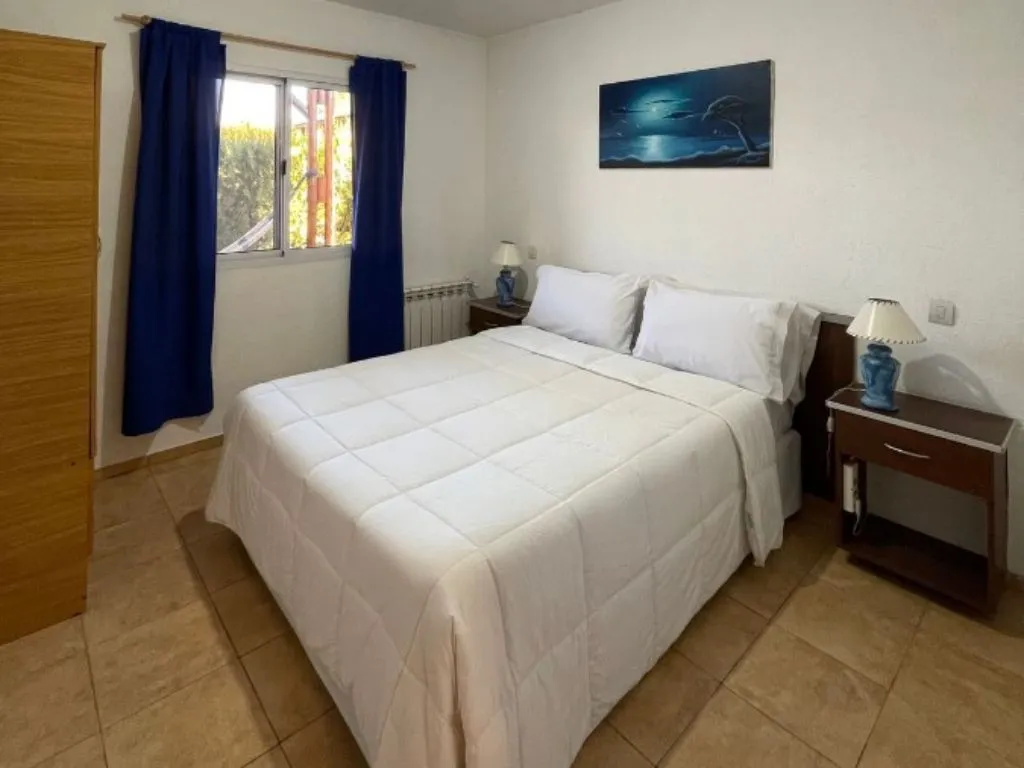 • Cabaña “Naranja” (2 dormitorios): 1 habitación con cama doble, otra con cama a castillo, diván cama en el living comedor, cocina equipada y baño completo.