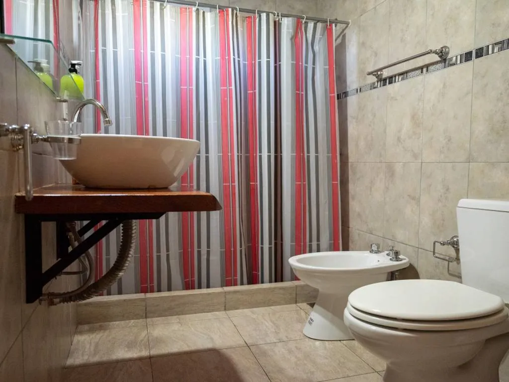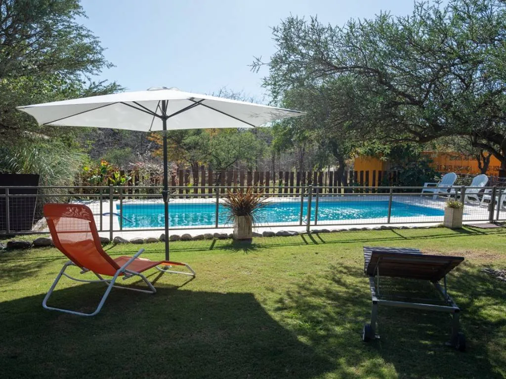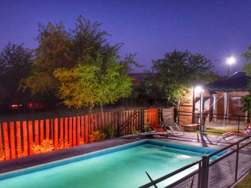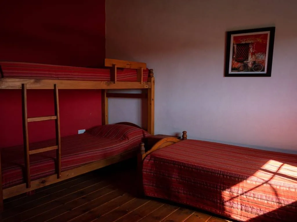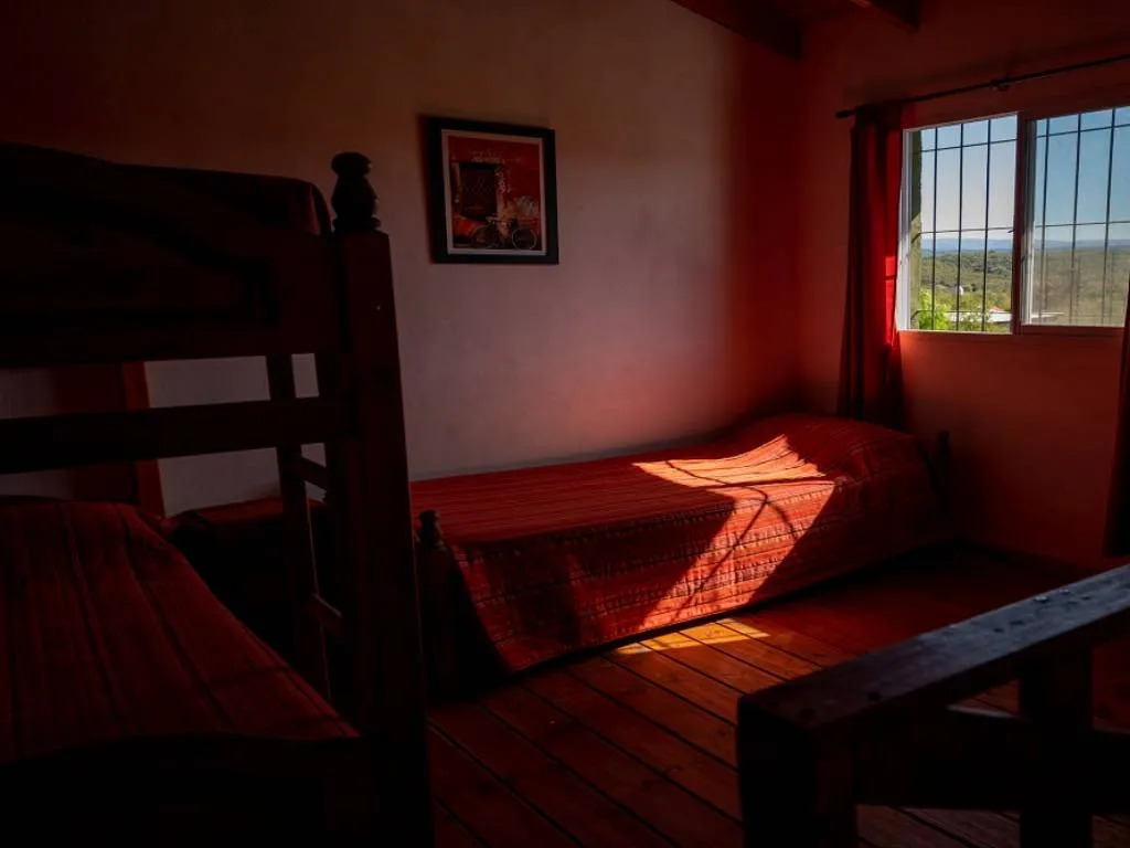 Lo de Alberto ofrece cabañas tipo dúplex y cuentan con dos dormitorios en la planta alta, uno privado con cama matrimonial y uno abierto con tres camas individuales.