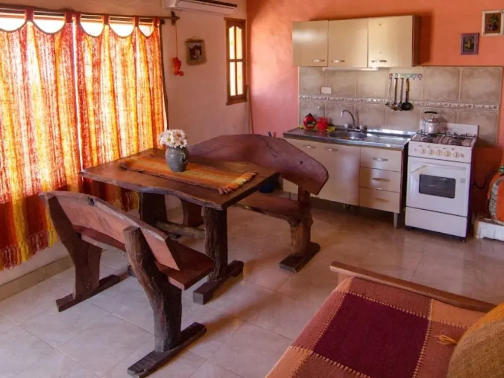 Cabañas muy comodas y amplias, con todos los servicios necesarios, ademas el predio tiene pileta, quincho, parrilla, y un hall a parte con sillones hermosamente decorado. El jardin lleno de flores, todo muy limpio. La señora que nos atendio es divina, muy buen trato. Lo mejor es que esta alejado del centro, lo que lo hace perfecto para el descanso lejos de los ruidos. Altamente recomendado.