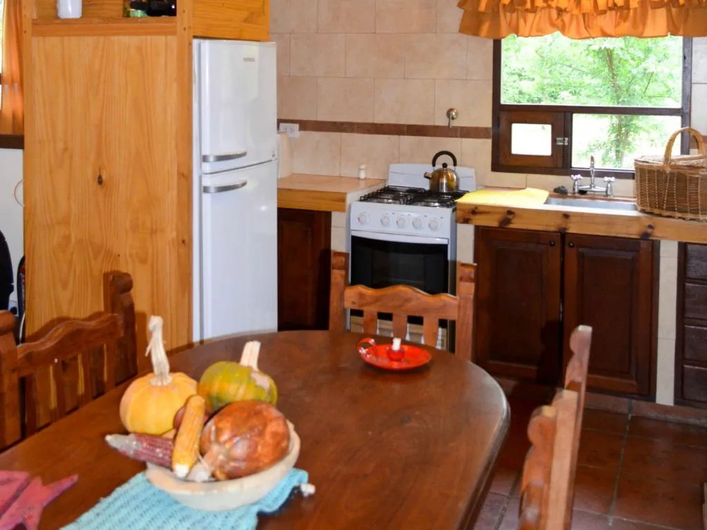 Entre los servicios se incluyen living-comedor con salamandra, cocina con horno microondas, heladera con freezer, TV con DirecTV, baño con toalleros eléctricos, asador propio con utensilios, y un quincho con asador junto al río. También se ofrece desayuno con café, té, yerba, leche, manteca, mermelada y pan casero, además de frigobar con bebidas y snacks. El servicio de mucama se brinda a partir de la tercera noche, con opción de contratarlo a diario. Como valor agregado, los propietarios pueden preparar un asado o carnes al horno ecológico a pedido.