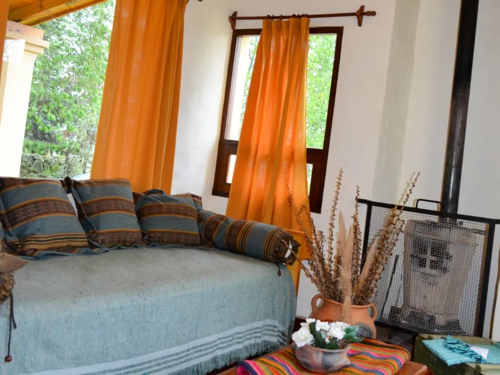 El parque de dos hectáreas invita a pasear entre árboles y plantas, y en verano disfrutar de frutas de estación como ciruelas, duraznos, manzanas, peras o damascos. Además, cada cabaña ofrece detalles de confort como carpintería de algarrobo, vajilla completa, sábanas de 220 hilos, colchones de alta densidad y acolchados de plumas.