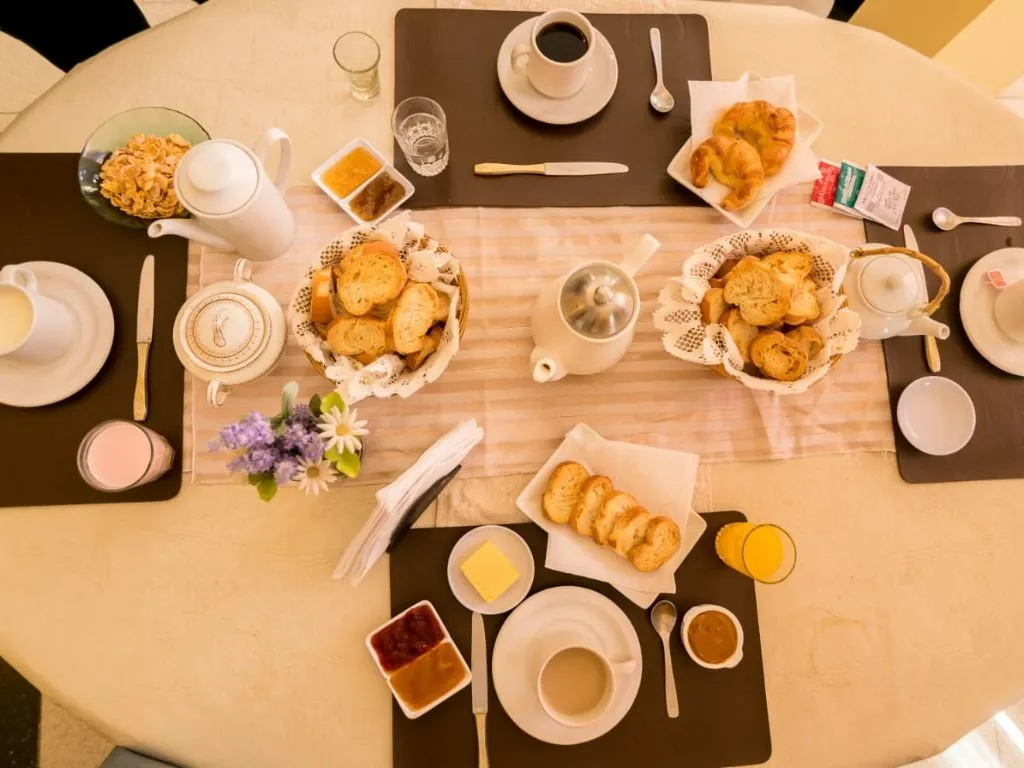 Cada mañana, los huéspedes pueden disfrutar de un completo desayuno incluido, con opciones especiales para celíacos, elaborado con productos frescos y locales. El hotel dispone de estacionamiento privado gratuito al aire libre, apto para autos medianos y pequeños.