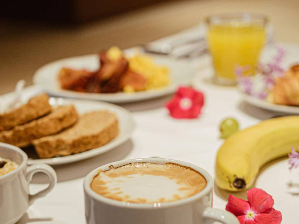 La variedad de comida tanto en el desayuno...