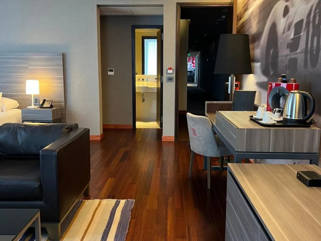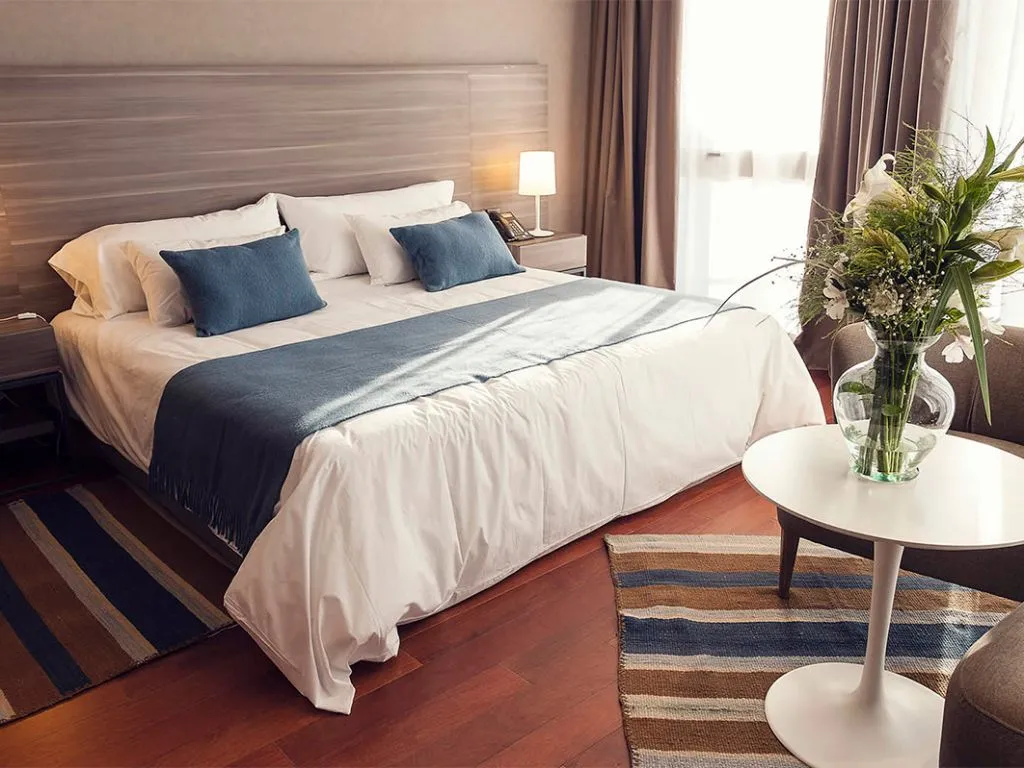 El hotel cuenta con 65 habitaciones cuidadosamente diseñadas y distribuidas en categorías como Suite Estándar, Suite Master y Suite Presidencial. Todas disponen de aire acondicionado, calefacción, minibar, TV satelital, wifi gratuito, y balcones con vistas privilegiadas. La Suite Presidencial destaca por sus amplias dimensiones, con 117 m² de espacio interior y 104 m² de balcón, además de living, comedor, cocina y baño en suite.