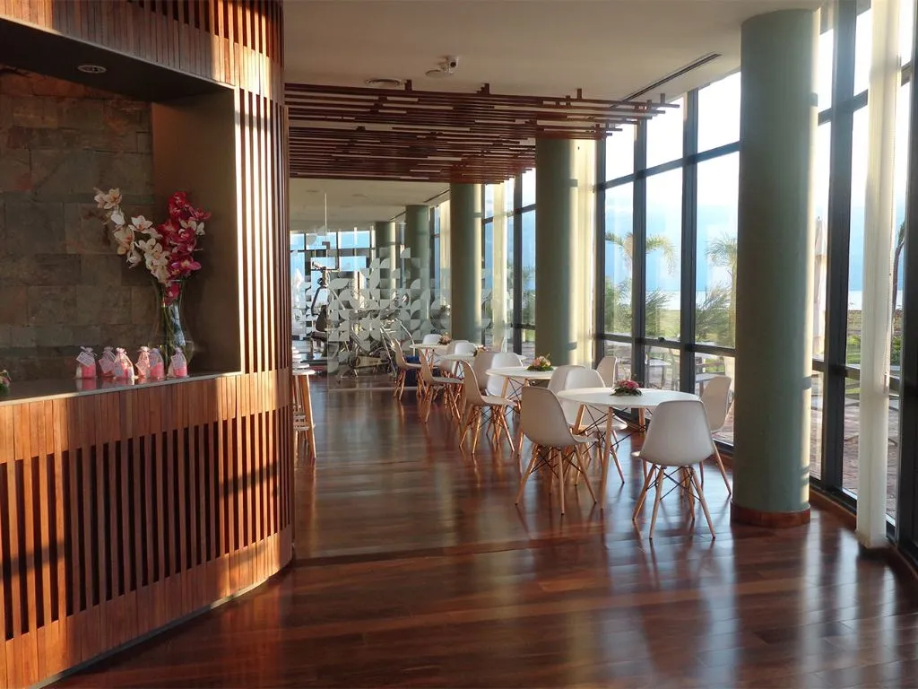 Para una experiencia más distendida, el Bar “El Podio” —ubicado en el primer piso— ofrece una carta amplia que va desde cafetería y pastelería hasta tragos y aperitivos, con una hermosa vista al lago y al paseo de la costanera.