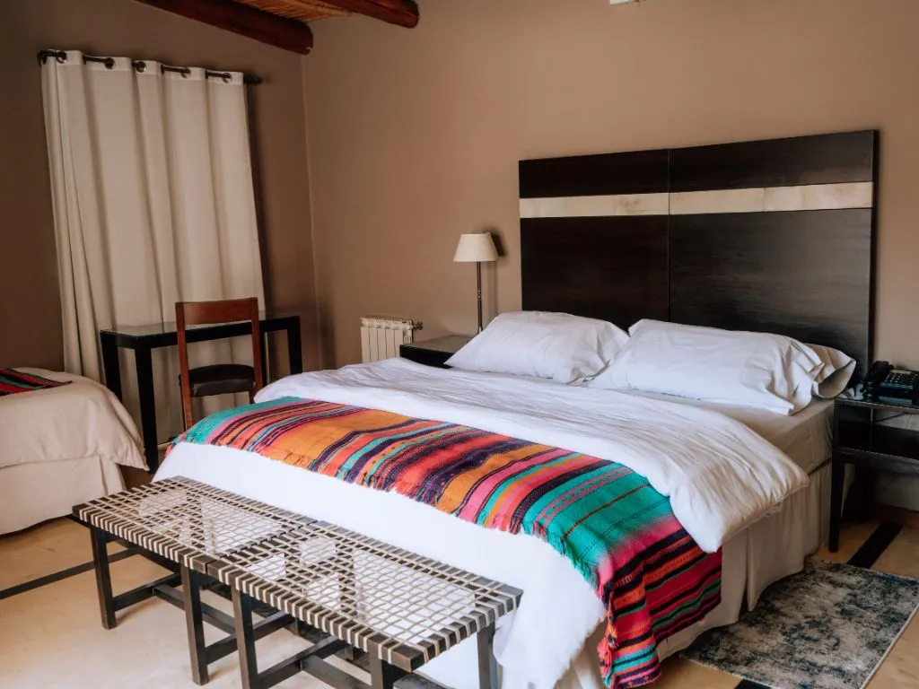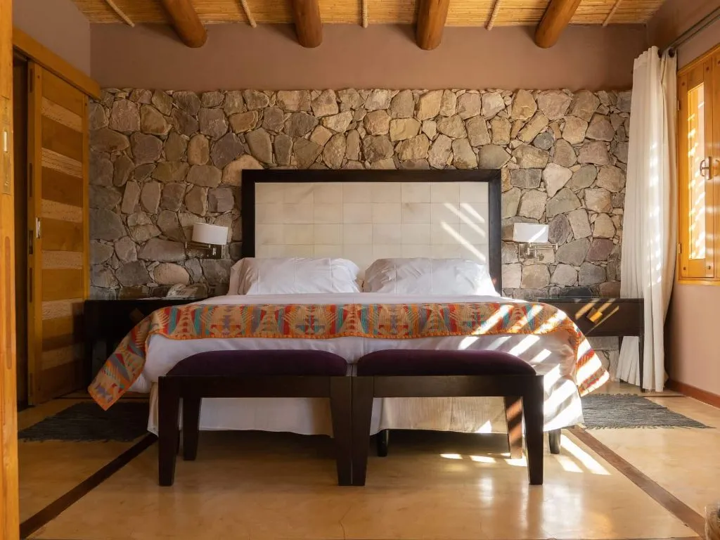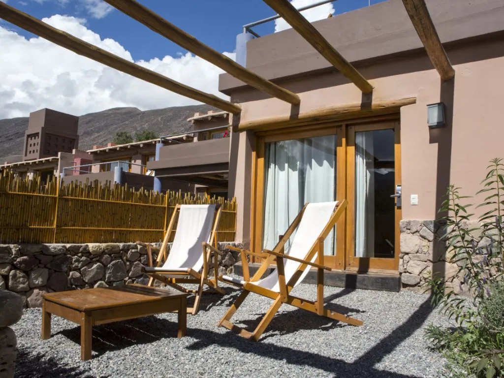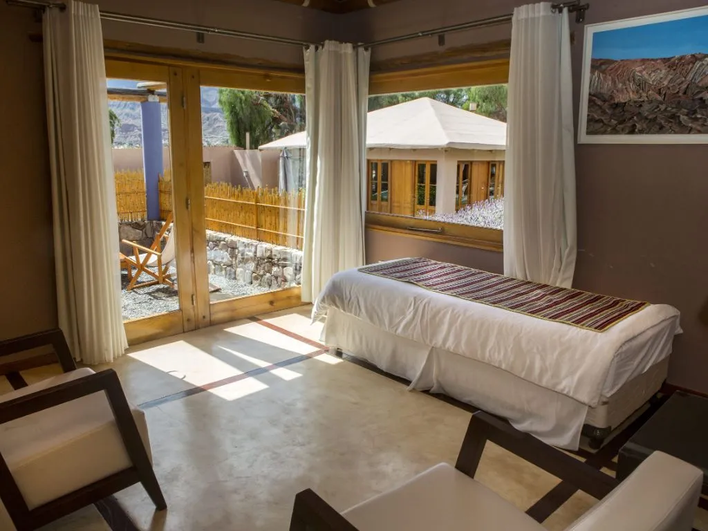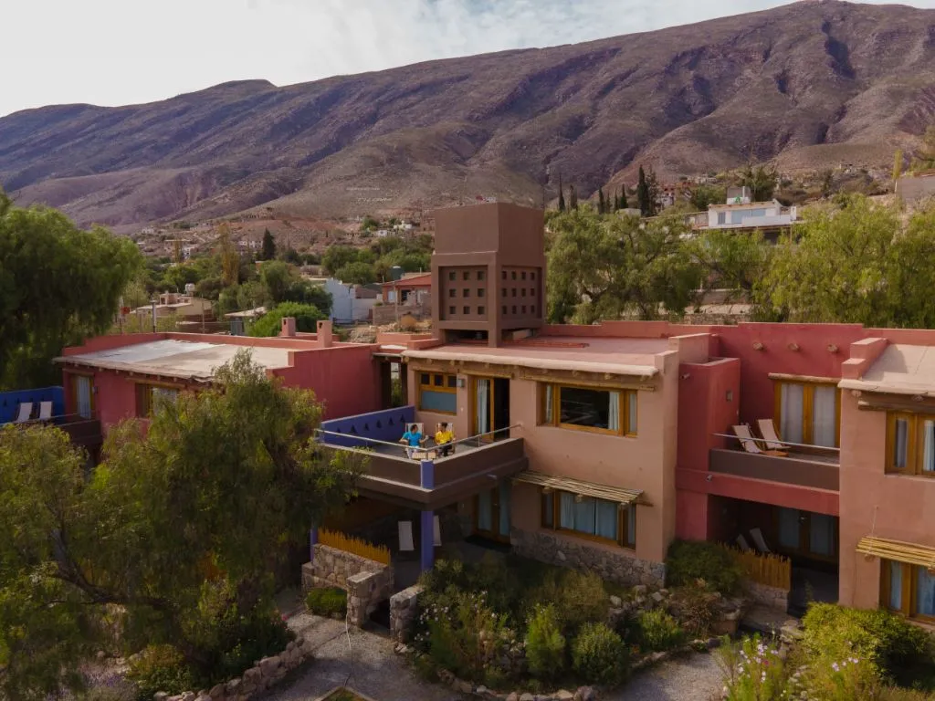 Este encantador hotel se destaca por su arquitectura integrada al paisaje, que utiliza materiales de la zona y una decoración cálida que respeta las raíces autóctonas. Desde sus ventanales y jardines, se pueden contemplar majestuosas montañas y cerros multicolores, lo que convierte cada estadía en una experiencia sensorial inolvidable.