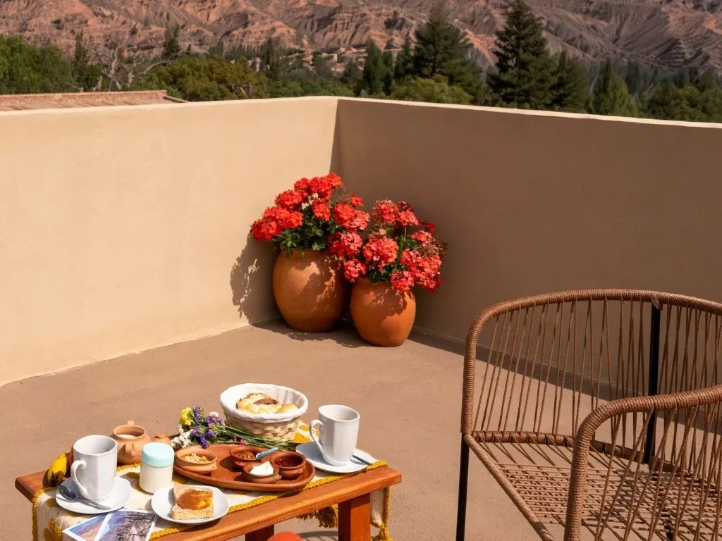The apart hotel provides guests with a common terrace with unparalleled views of the Quebrada de Humahuaca, equipped with tables and chairs to rest and enjoy the landscape in a peaceful setting. The outdoor parking without fixed assignment ensures a stay without extra hassles and concerns.