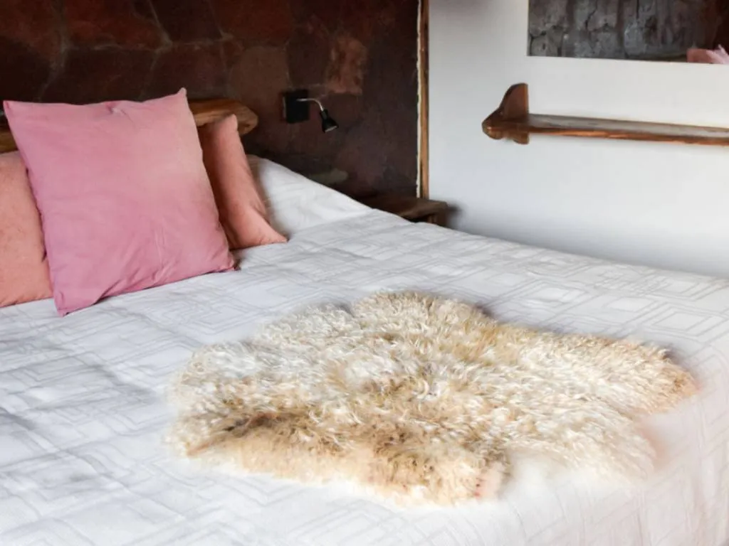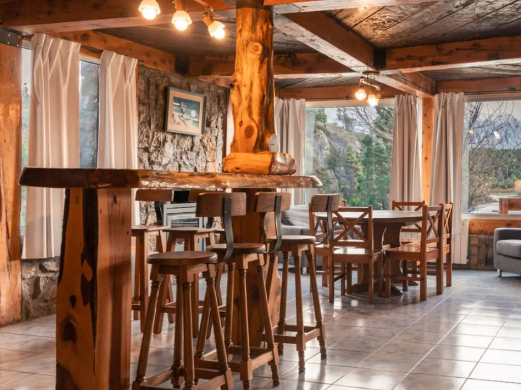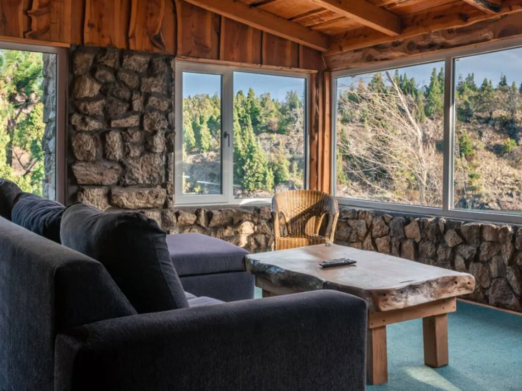 Las cabañas, construidas en madera y piedra, combinan a la perfección el estilo rústico con las comodidades modernas. Cuentan con amplios espacios interiores y exteriores, perfectamente equipados para garantizar una estadía confortable. Los huéspedes pueden elegir entre cabañas para 2, 5 o 7 personas, todas ellas con cocina completa, baño privado y terraza con parrilla.