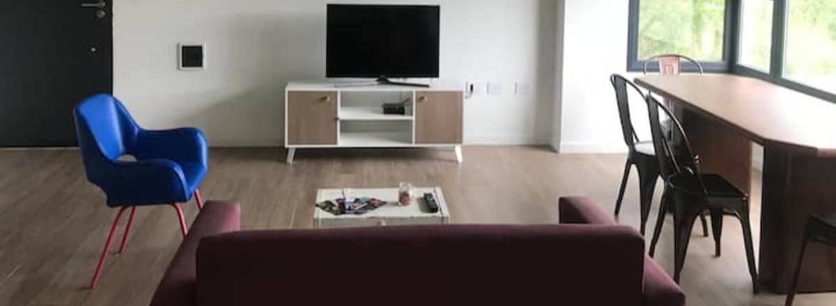 Es un lugar espacioso, luminoso y tranquilo, ideal para descansar y relajarse. Cuenta con una amplia parrilla, balcón, cocina completamente equipada, lavarropas, etc.