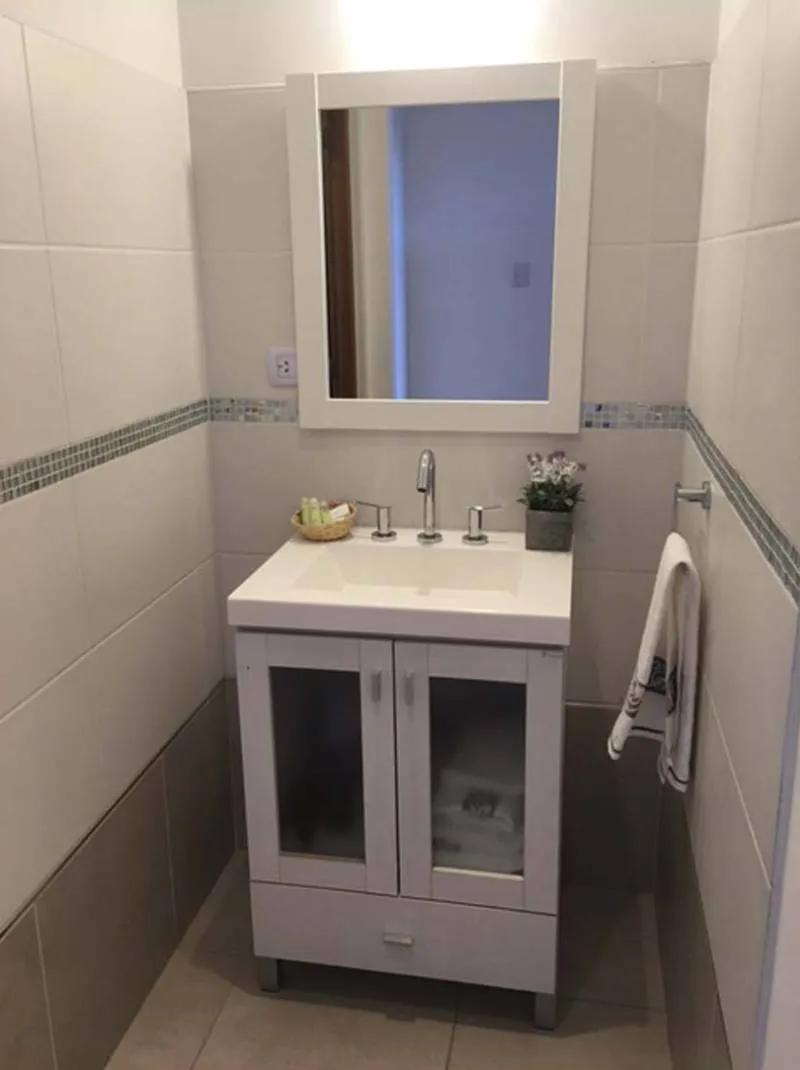 El departamento cuenta con una habitación (con cama matrimonial), dos camas sommier mas en el el estar y un baño completo.