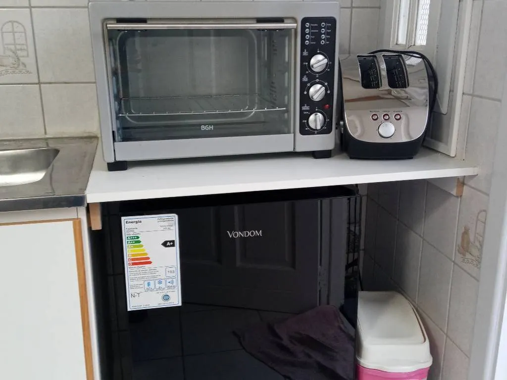 Horno a gas y eléctrico. Frigobar. Tostadora y pava eléctricas.