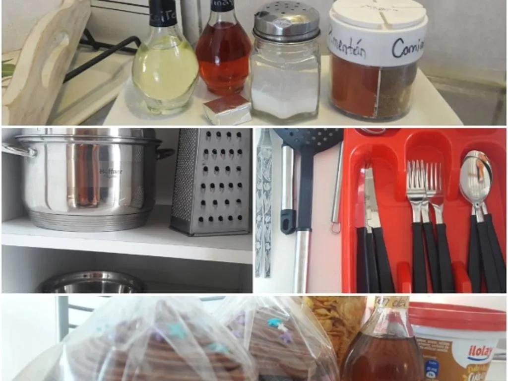 Cuenta con lo necesario para cocinar. Vajilla completa, fuentes, ollas, sartén, colador, etc.