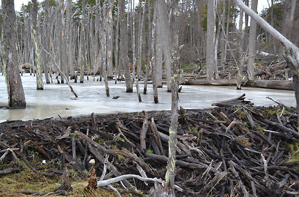 Congelado embalse de castores